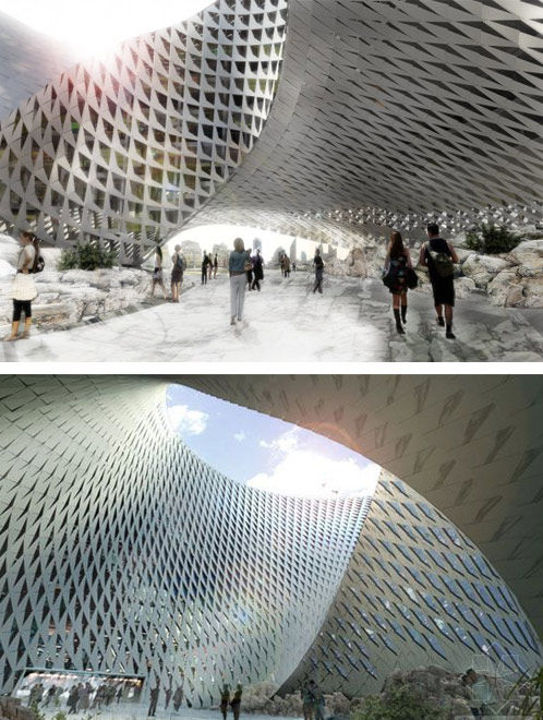 在哈薩克斯坦新國家圖書館公開方案競賽中,丹麥BIG(Bjarke Ingels Group)建筑師事務所的設計作品最終取得了第一名,成為最終的設計方案被敲定。這次參加競賽的共有19個團隊,丹麥BIG建筑師事務所作為五個預選種子團隊之一參加。 這座新的國家圖書館坐落在哈薩克斯坦共和國首都阿斯塔納,占地約3.3萬平方米,并將以第一屆總統努爾蘇丹-納扎爾巴耶夫的名字來命名。這次競賽的獲獎方案是由該國現任首相與建筑師組成的評委會共同選出。其最終獲獎的設計作品集現代特色和傳統經典于一身,整個建筑呈向內“循環”的螺旋流線造型,簡約而雅致。 這次國家圖書館項目中BIG建筑師事務所資金合伙人BjarkeIngels解釋道:“國家圖書館的設計是將穿越空間與時間的四個世界性經典造型——圓形、環形、拱形和圓頂形——以莫比烏斯圈(M·biusStrip,注釋見后文)的形式融合在了一起。它擁有環形的清晰明了,擁有圓形大廳的庭院設計、擁有拱形的走廊通道,以及蒙古圓頂帳篷般的柔和輪廓,四種建筑原型的結合創造了一個新的兼具地方性和國際性特色,既現代又永恒經典,既獨特又具有建筑歸屬感的全新國家標志性建筑。” 坐落新首都的國家標志性建筑 該圖書館將作為哈薩克斯坦未來建設的基石之一,同時也是代表哈薩克斯坦民族特性的先鋒性機構,其設計工作自然不僅僅是對建筑結構上創新的挑戰。圖書館所在地阿斯塔納從1997年開始成為哈薩克斯坦的新首都,新建國家圖書館不僅將成為歷史不長的新首都重要的基礎性、標志性建筑,還將成為一個聚集知識分子的多功能文化中心。 和位于哈薩克大陸心臟地帶的首都阿斯塔納一樣,這座國家圖書館將成為集合哈薩克特色景觀的心臟式建筑。圖書館周圍的公園中采用了大量樹木、植物、礦物和巖石裝飾,可供游客親身體驗哈薩克斯坦豐富的自然景觀。 圖書館中提供了各種設施,供人們閱讀的書籍雜志、電影和其他媒體資料應有盡有。圓環裝分布的書架、柔和的燈光的通風設備將帶來舒適的環境。建筑物中心地帶還設立了一處擁有淺藍色天穹圓頂的庭院。 莫比烏斯圈造型設計的方案中包含了兩個相互咬合的結構——完美的圓和盤旋的公共空間,將圖書館、博物館和服務功能水平毗鄰的傳統排列方式轉變成為各種功能相互疊落、各層次線條交錯完美融合在一起的方式。BjarkeIngels表示:“我們用一個連續的表面將空間組合的變化包裹在內,創造出了一個莫比烏斯圈造型——外墻面忽而在外忽而在內。” 莫比烏斯圈式的造型設計 莫比烏斯圈是一種單側、不可定向的曲面。因A.F.莫比烏斯(August Ferdinand M?bius,1790-1868)發現而得名。將一個長方形紙條ABCD的一端AB固定,另一端DC扭轉半周后,把AB和CD粘合在一起,得到的曲面就是莫比烏斯圈。數學中有一個重要分支叫“拓撲學”,主要是研究幾何圖形連續改變形狀時的一些特征和規律的,“莫比烏斯環”變成了拓撲學中最有趣的單側面問題之一。莫比烏斯環的概念被廣泛地應用到了建筑,藝術,工業生產中。運用莫比烏斯環原理我們可以建造立交橋和道路,避免車輛行人的擁堵。 說直白一點,采用莫比烏斯圈結構的建筑設計,可以在同樣平面面積中通過不同角度的“空間扭曲”而讓原有的空間在不同方向得以“延伸”,從而獲得更多的可用空間。 國家圖書館項目負責人托馬斯-克里斯托弗森形容道:“國家圖書館的設計打破了傳統建筑的造型,它讓墻壁在不同的角度變化,時而是墻,時而是屋頂,時而成了地板,最后又變成了墻。”