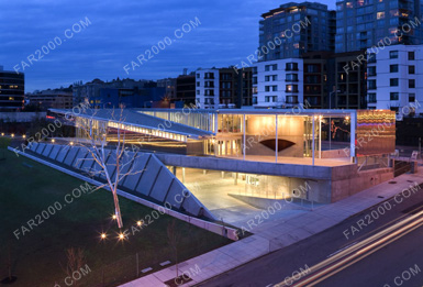 據(jù)9月1日?qǐng)?bào)道,西雅圖作為很多后工業(yè)城市的代表,與其濱水地帶之間以交通基礎(chǔ)設(shè)施隔開(kāi)。西雅圖藝術(shù)博物館的奧林匹克雕塑園就是將一處8.5英畝的原工業(yè)改造過(guò)來(lái)的。這個(gè)園區(qū)通過(guò)鐵路軌道和四條一級(jí)公路分成三個(gè)獨(dú)立的地塊,俯瞰Elliott灣。這一設(shè)計(jì)在現(xiàn)有基礎(chǔ)設(shè)施上建立了連續(xù)的景觀設(shè)置,重新將城市中心與復(fù)興后的濱水地帶連接起來(lái)。 連續(xù)的“Z”字形綠色平臺(tái),從城市到濱水下降了40英尺,主要用于觀賞天際線和Elliott灣。一座用于藝術(shù)空間、表演和教育的展臺(tái)后是通向水邊的步行道,并連接了西北部的三座新建景觀:溫帶常綠林、落葉林和一座海岸線花園。花園里的水中平臺(tái)構(gòu)成了魚(yú)類(lèi)和植物的水下棲息地。 奧林匹克雕塑園為藝術(shù)提供了一個(gè)富有動(dòng)感和不斷演進(jìn)的氛圍,擴(kuò)展了博物館墻外的當(dāng)代藝術(shù)品體驗(yàn),也為藝術(shù)和生態(tài)、城市與濱水之間創(chuàng)造了連接。