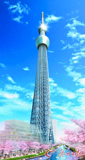 日本東武鐵塔“天空樹”公司16日宣布,該公司負責建造的東京新地標建筑——被稱為“東京天空樹”的新電視塔塔高將比原計劃增加24米,達到634米。該塔將超過中國廣州的新電視塔成為世界最高電視塔。
