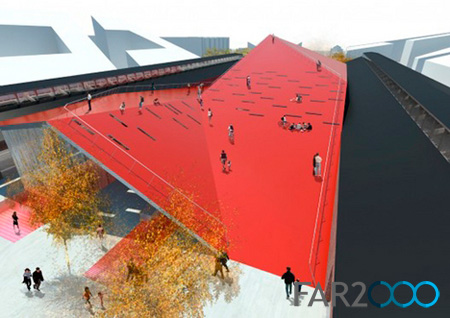 3XN提議的綠色空間強調了貨運鐵路大廳的歷史,包括改造后的大廳之間的一座新的帶綠色屋頂的大樓。該項目還修建了一座大型的講堂,連接了歷史性、功能性和建筑空間。