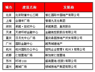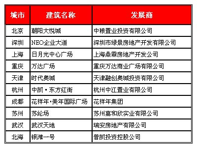 2009-2010中國城市綜合體新地標 表2:2009-2010中國城市綜合體新地標