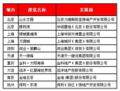 2009-2010中國城市住宅新地標 表3:2009-2010中國城市住宅新地標