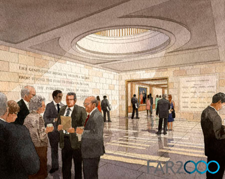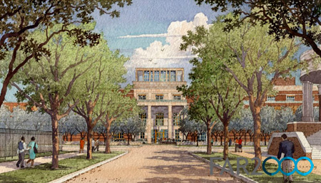 據11月18日報道,喬治 W.布什總統圖書館設計方案今日在達拉斯揭曉。前第一夫人勞拉·布什、建筑師Robert A. M. Stern和景觀建筑師Matthew Urbanski主持了公布儀式。這座圖書館位于南衛理公會大學(SMU)校區,占地23.11英畝,是用磚石和石灰石建造的,與帶有美國喬治時代風格的校區形成互補,并與德克薩斯州的景觀融合在一起。 光線充足的建筑既具有總統的氣派,又顯示出好客的一面;既令人想到德克薩斯州,又讓人感受到華盛頓的氣氛。圖書館包括三個部分:檔案館、博物館和一個政策研究中心。 參觀者通過“自由大廳”進入到建筑內。這個開放的充滿光照的空間連接了博物館的各個部分。大廳的一邊是博物館的永久展品,包括布什總統在位時總統辦公室的復制品以及一座模擬白宮玫瑰園的戶外德克薩斯玫瑰園。博物館講述了布什總統的關鍵決策和核心理念:自由、機會、責任和同情。自由大廳的另一邊是一個臨時展區、一座紀念庭院和一座咖啡館。 研究中心有自己的入口,設置了一座會議中心、一座364席的講堂以及翻譯和廣播設施等,還為學者提供了辦公室和其他功能區。檔案館則放置了布什在任期間的官方文件和物品等。 由Michael Van Valkenburgh Associates設計的景觀意圖塑造一個城市公園,設置了草坪、遮陰的大樹,可一年四季在此休息、野餐和游戲。各種花園和庭院、開滿野花的草地和林木為蝴蝶、鳥類和其他野生動物種類提供了天然棲息地。 這座建筑將取得LEED白金級認證,并計劃在2013年正式開放。