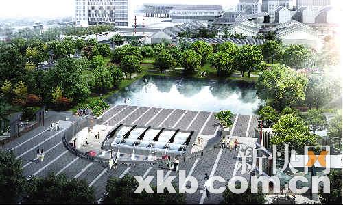 陳家祠南廣場效果圖。新快報記者李小萌/攝 廣場高地鏟平 八成空地種樹 ■新快報記者 吳璇堅 通訊員 荔宣 昨天,陳家祠廣場最終規劃正式亮相,近4萬平方米的一期廣場規劃中將不加建多余建筑,八成空地加種大樹,削平古祠前廣場,恢復建成“一園一軸”的傳統風水格局,新增445個地下停車位,一期工程將在明年9月前完工。 用地6.7萬平方米建設分三期 此次陳家祠廣場規劃總用地面積為67943.4平方米,規劃建設分三期進行,首期主要是陳家祠以南原32中及二輕研究所地塊及陳家祠東側廣場的改造,占地面積約3.7萬平方米。 據陳家祠廣場設計方、華南理工大學建筑學院城市規劃系副主任周劍云介紹,最終敲定的一期方案延續“一園一軸”、“五間三進”的嶺南古祠堂結構。