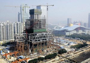 由世界著名建筑設(shè)計(jì)大師雷姆·庫(kù)哈斯設(shè)計(jì)的深圳證券交易所營(yíng)運(yùn)中心,目前已施工至第20層,被譽(yù)為“世界上最大空中花園”的“漂浮平臺(tái)”漸露真容。 記者從負(fù)責(zé)深圳證券交易所營(yíng)運(yùn)中心鋼結(jié)構(gòu)施工的中建鋼構(gòu)有限公司了解到,該項(xiàng)目總面積26.7萬(wàn)平方米,地下3層、地上46層,建筑高度245米。與別的建筑不同的是,在立柱形的大廈中下部,建筑的底座被抬升至30多米高,形成一個(gè)巨大的“漂浮平臺(tái)”,整體造型猶如一個(gè)漂亮的燭臺(tái)。 引人關(guān)注的“漂浮平臺(tái)”東西向懸挑36米,南北向懸挑22米。目前,南北向鋼結(jié)構(gòu)吊裝已完成,東西向正在施工,建成后該平臺(tái)面積達(dá)到1.58萬(wàn)平方米,成為“世界上最大空中花園”。 深圳證券交易所營(yíng)運(yùn)中心預(yù)計(jì)于2011年8月全部完工。