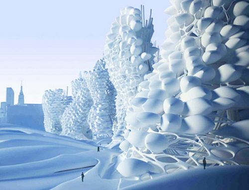 Chimera設計公司為未來的倫敦設想出了一系列令人難以置信的螺旋式摩天大樓,其結構之復雜、多樣堪比紅樹林濕地生態系統。該項目取名為“曼加勒之城”(Mangal City),它利用一個一個分離的小單元組合成整個“城市生態系統”,還能夠根據環境條件的變化做出適應性的調節。“曼加勒之城”無疑是仿生學應用的又一典范,其中寄予著設計者們大膽而又夢幻的想象,從它身上我們能夠讀出未來派建筑的一大特色——那就是靈活多變。