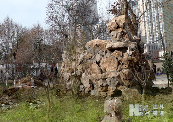 圖為金陵中學附近一地下停車場出風口改建的疊石假山圍擋