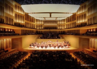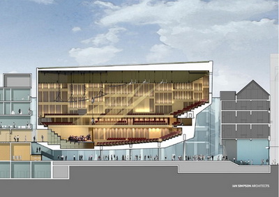伊恩-辛普森建筑事務(wù)所與聲學(xué)專家柯克加德合伙公司(Kirkegaard Associates)合作,將改建安特衛(wèi)普的“伊麗莎白王后音樂廳”(Queen Elizabeth Hall),作為比利時(shí)“皇家愛樂樂團(tuán)”(Royal Flemish Philharmonic Orchestra)的基地,也作為一個(gè)會(huì)議場(chǎng)所。 這個(gè)改建項(xiàng)目的預(yù)算為3,000萬歐元,改建工作將于明年開始。 這個(gè)項(xiàng)目的競(jìng)爭(zhēng)吸引了65家公司。 比利時(shí)首相克里斯-皮特斯說:“新的‘伊麗莎白王后音樂廳’將贏得每一個(gè)人的贊揚(yáng)。它將成為一個(gè)娛樂和文化的國際會(huì)議地點(diǎn),成為佛蘭德斯區(qū)和安特衛(wèi)普城的地標(biāo)。” 伊恩-辛普森建筑事務(wù)所的計(jì)劃包括稍微減少目前的會(huì)堂的規(guī)模,以改善它的聲學(xué)效果和自然光線。