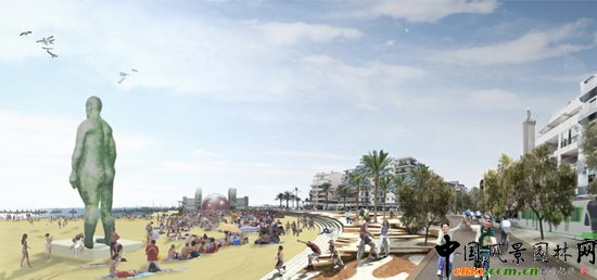 ![]() West8在規(guī)劃中加入了一座25米高的人物塑像,用以代表現(xiàn)有的惡俗形象。