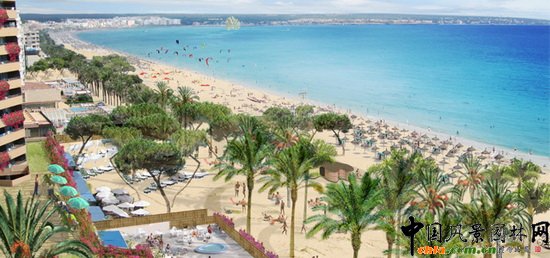 ![]() 馬略卡島靠近海岸的地方有幾座大型旅館,游客們除了在海灘玩耍以外的衣食住行都可以在這里解決。規(guī)劃中去掉了旅館與海灘間的主干道,這樣,游客不僅可以直接從泳池進(jìn)入海灘,還創(chuàng)造了寧?kù)o的海灘環(huán)境。然而,這也并非代表著海灘成為了旅館的私有領(lǐng)地,旅館和海灘之間會(huì)設(shè)置一條自行車道,這條自行車道將從前到后一直貫穿在海灘上。