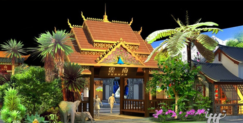 云南館 主題:七彩云南 和諧城鄉 云南館將以云南特色和元素為主,通過以大理白族民居為特色的“云南廣場”,并且選擇了昆明市的標志性建筑金馬碧雞坊為入口,形式美觀大氣,以寫實的方式還原建筑物,呈現出云南絢麗的民族文化和城鄉和諧發展的狀態。展館內還將展示傣家竹樓等云南少數民族建筑、普洱茶和茶藝表演,另有多媒體互動和滾動播放圖片、電視紀錄片展示云南各個州市、旅游小鎮、邊境口岸的城鄉規劃、生態建設、旅游發展。