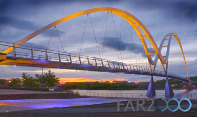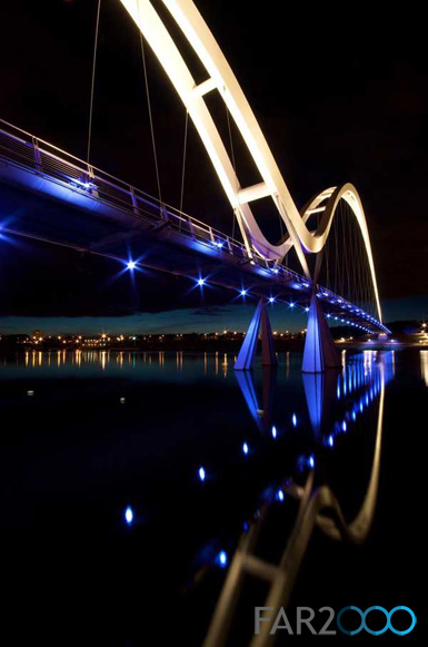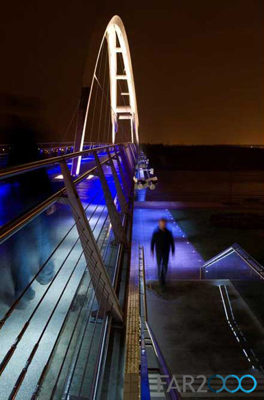 作為英國North Shore復興計劃的一部分,Stockton-on-Tees修建的這座步行橋連接了Tees河的南北岸,并為該地區提供了更好的商業和通勤路徑。