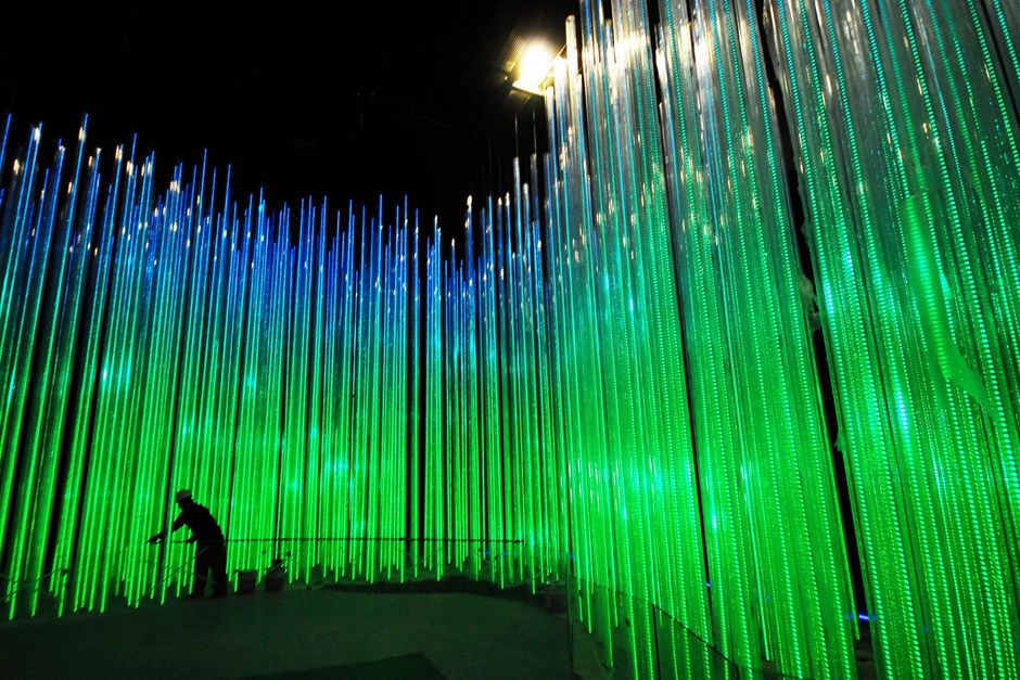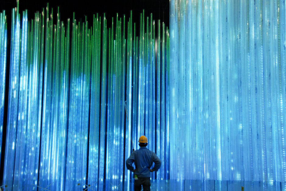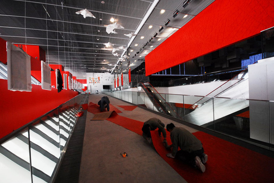 2010年3月25日,工人在世博中國館49米的“東方足跡”展區(qū)調(diào)試環(huán)球影院,多方位的燈光投射將影院穹頂變成一顆巨大的鉆石。 ![]() 2010年3月25日,施工人員在世博中國館“東方足跡”展區(qū)調(diào)試展品“意向植物”。 近日,上海世博會(huì)永久性標(biāo)志建筑之一——中國國家館內(nèi)部展區(qū)進(jìn)行調(diào)試,迎接4月20日試運(yùn)營。 ![]() 2010年3月25日,施工人員在世博中國館“東方足跡”展區(qū)調(diào)試展品“意向植物”。 ![]() 2010年3月25日,工人在世博中國館體驗(yàn)展區(qū)進(jìn)行調(diào)試,軌道車已鋪設(shè)完畢。 ![]() 2010年3月25日,工人在世博中國館“東方足跡”展區(qū)進(jìn)行調(diào)試。 ![]() 2010年3月25日,工人在上海世博會(huì)“中國館”進(jìn)行最后布展,展區(qū)將于4月20日開始試運(yùn)營。 ![]()