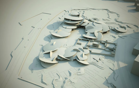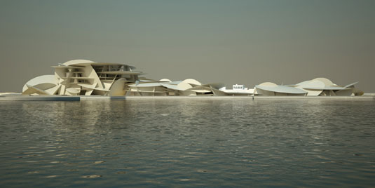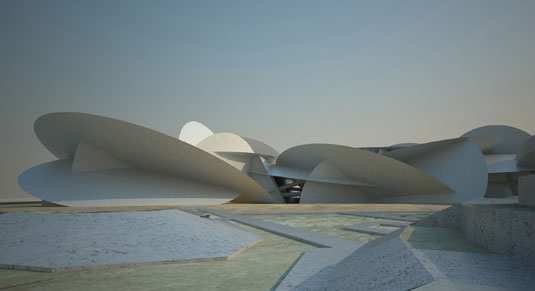 “卡塔爾博物館局”的建設多哈的文化基礎設施的雄心勃勃的計劃,向著實現更接近了一步。日前,“卡塔爾博物館局”宣布了法國建筑師讓-努維爾(Jean Nouvel’)為“卡塔爾國家博物館”(National Museum of Qatar)所做的設計方案。以這個初步的模型為基礎,新的綜合設施看起來一點也不像貝聿銘(I.M. Pei’)設計的樸素的在2008年投入使用的“伊斯蘭藝術博物館”(Museum of Islamic Art)。 讓-努維爾設計了一種矮的、成堆的、互相連接的“碟子”。這些“碟子”圍繞著一個中心庭院形成一連串的展覽館。這種安排,希望讓人想起一種“商隊旅舍”(caravanserai)——這個地區的傳統的路邊小客店。這是一種波浪形的、被風刮成的沙丘的形狀和一種沙漠玫瑰的扁平的水晶狀的“花瓣“。到目前為止,互聯網上的批評家還把這個設計比喻為飛碟(UFO)的墳場和混亂的“廚房”。