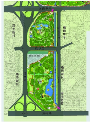 記者18日從市中心公園管理處獲悉,該園改造一期工程正進行緊張的招標準備,預計一期工程8月份開工,一期工程投入8000萬元,建設A、C、D三個區,一期工程預計明年上半年完成。 在公園建設過程中,為解決福田河改造工程挖方不外運,計劃在園區形成的堆填土區,經整理形成形態自然、連綿延伸的山體,成為公園視覺高點,在較高的山體頂端設置觀景臺,俯看公園美景,遠眺城市風貌,成為吸引游人的景點,同時起到從外部增加公園視覺識別性的作用。在較低山體頂端設置休閑亭臺,可閑坐其中,觀看園區內各種體育活動的開展。