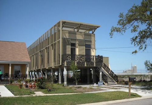 由KieranTimberlake設計的路易斯安那州新奧爾良的9號特別會館 該會館是Brad Pitt’s(布拉德皮特)的矯正基金(Make it right)最早建成的項目之一。該基金會正在被Katrina颶風及其帶來的洪水摧毀德沃德區建造150個家庭住宅。