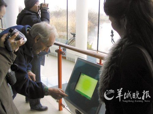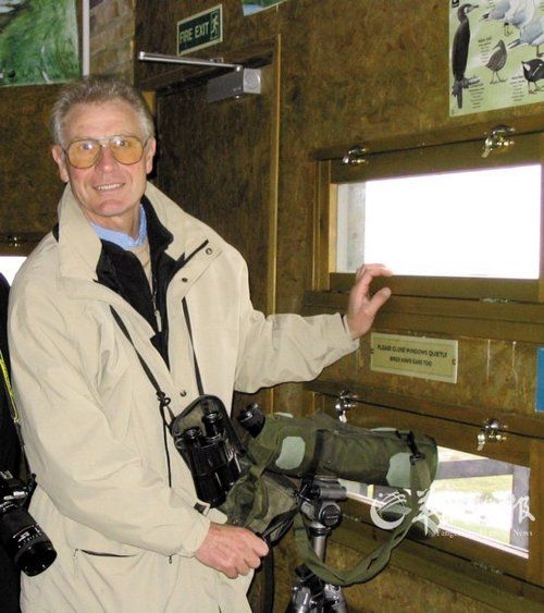 裝悠游自在活動的水禽。由于公眾的自覺愛護,許多常見的水禽已經不害怕近距離和人接觸 裝滿頭白發的志愿者向游客介紹遠程觀鳥系統。這位志愿者曾經是BBC從事環境報道的資深記者