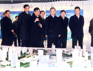 尹海林(右5)向溫家寶總理匯報(bào)天津市規(guī)劃情況