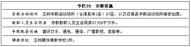 第四節(jié) 宗教設(shè)施 宗教活動場所。對損毀宗教活動場所及宗教教職人員生活用房的恢復(fù)重建,要一視同仁,同等對待,合理安排,給予支持。寺院等宗教活動場所的恢復(fù)重建,由相關(guān)部門進(jìn)行評估并與寺院管委會協(xié)商,合理制定恢復(fù)重建方案。其中涉及文物保護(hù)單位宗教活動場所的原址恢復(fù)重建方案,要按規(guī)定報文物主管部門批準(zhǔn)。 宗教教職人員生活用房。宗教教職人員生活用房的恢復(fù)重建,要合理確定建設(shè)規(guī)模和標(biāo)準(zhǔn),與寺院管委會協(xié)商,統(tǒng)籌考慮施工組織方式。