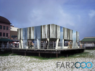 美國最近舉辦了亞特蘭大市大屠殺紀念館設計競賽,吸引了715個參賽作品。這是由亞特蘭大市Boardwalk大屠殺紀念館組織(ACBHM)舉辦的競賽,目的是找到合適的形式讓人們記住歷史上曾經發生的納粹殘暴滅絕行為。 占地面積2400平方英尺的紀念館位于海岸邊,這里原先曾有一座亭臺。拆除后將建造10英尺高的建筑,內部環境十分安靜,外部環境則很放松。 獲勝者Andrisani在墻面和地板上設置了LED條帶,并由屋頂的被動太陽能系統供應電力。屋頂可以收集雨水,其留下的痕跡象征著大屠殺帶來的創傷。 建筑的外圍沒有采用傳統的水泥,而是環境友好型的材料Syndecrete。內部空間的墻面和天花板上印有大屠殺幸存者的照片,并按照“生命之樹“排列,象征著希望和不屈不撓。很多照片是設計過程中,Andrisani本人在訪談幸存者時拍攝的。