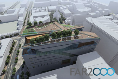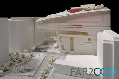 該項目位于海牙一座重要的但甚少利用的城市廣場上,包括零售店和售票處,由5座場館組成。 這里有半私人的設施,提供給交響樂隊和專業舞蹈公司使用。三座音樂學校和一座舞蹈學校也設在這里。半公共的路徑穿越了整個項目,包括演播室、排練室、教室和休息室等。 底層的各種活動讓空間活躍起來,那里配備了可上網的咖啡館、咖啡商店、售票處、舞蹈道具商店以及不需要購票的休息廳等。 建筑的垂直層次用“迷你舞臺”來強調,餐館、圖書館和公共入口以及面對廣場的兩座劇場都強化了這一感受。45米高的中央大廳是主要的活動場所,而上方的景觀屋頂能提供給所有顧客和當地居民使用。