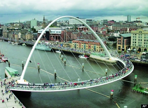 ![]() 英國蓋茨亥德千禧橋是一座傾斜橋,專為行人和騎自行車的人們通行。它橫跨英國泰恩河,并通過壓力揚吸機來進行旋轉,以便讓船只通過。