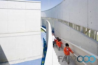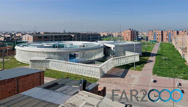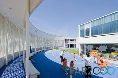 GiancarloMazzanti在哥倫比亞首都波哥大郊外設計了一座幼兒園。這是一個沒有規劃的貧困住區,房子分布得很零散,因此幼兒園清晰的輪廓為鄰里帶來一些新鮮感和希望。 Mazzanti是哥倫比亞新一代的建筑師,富有理想又極具實用主義。為了加快施工速度,降低成本,Mazzanti開發出一種模塊化的教室單元,適用于大部分的學校工程。通過不同的組合方式以及模塊單元的擺放和游戲區、花園的外形差異,避免產生單調的感覺。 這座名叫“ElPorvenir”的幼兒園有5個教室單元,隨意布局,并以一個流通路徑連接。教室都是簡單的兩層樓混凝土盒子結構,兩端是玻璃立面。教室的邊角用橢圓形的不銹鋼網面圍繞,讓孩子安全地在此嬉戲。 哥倫比亞的學校一般都遠離公共區域,但是這座幼兒園卻沒有樹立屏障的意圖,內部的邊角是一個彎曲的石廊柱,設置了長凳和庇蔭處。幼兒園里還設置了一些公共空間,如多功能室、兒童俱樂部、廚房以及就餐區等。這些公共空間位于石廊柱之外,保證了教室的安全。這座幼兒園成為社區不可分割的一部分,推動了其加快社會更新的使命。
