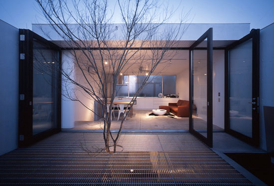 Baqueratta是個日本的建筑設計工作室,它主要是設計一些日本式的住宅建筑。它的設計風格跟其他公司是有區別的,就像這個在東京的OK HOUSE,外面是黑暗沉重的,一下子都看不到門在哪里,只看到有一條樓梯。但一旦進入家里,一盞燈發出柔和的光芒,給人以強烈的對比感。房子的空間主要以玻璃門墻來間隔。
