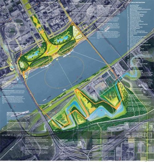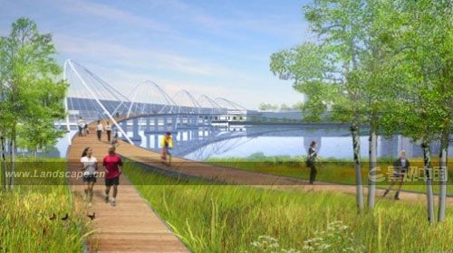 18日,美國圣路易斯州舉行一場名為“2015城市+拱門+河流” (The City+The Arch+The River 2015)的展覽,此展覽展示了參與GATEWAY ARCH國家公園設(shè)計的最后決賽五個參賽團(tuán)隊(duì)的設(shè)計方案。大賽組織要求參賽者為拱門構(gòu)建出更好的城市地標(biāo)形象,并通過修復(fù)區(qū)域間連接和激活區(qū)域活力,從而使這個國家公園重新融入該城市和區(qū)域的肌理中去。公園建設(shè)預(yù)計2015年8月28日完成,那時將時逢GATEWAY ARCH拱門建筑建成五十周年紀(jì)念日。 以下是每個參賽項(xiàng)目的介紹: 貝尼奇建筑事務(wù)所(The Behnisch Architekten)的提案(由Stefan Behnisch和Chrestof Jantzen主持,與Gehl Architects和Stephen Stimson Associates設(shè)計事務(wù)所共同完成)使環(huán)繞著標(biāo)志性拱門的國家公園重新煥發(fā)了活力,成為完整而有活力的公眾空間。“我們的工作很大程度上需要嚴(yán)格的分析,而且受到社區(qū)條約的影響。在創(chuàng)造能夠表達(dá)文化價值與環(huán)境道德的景觀過程中,去闡釋這種將要公之于眾的愿景和理念需要很強(qiáng)的專業(yè)性。”建筑師們解釋說。 在Michael Van Valkenburgh景觀設(shè)計事務(wù)所的方案中,設(shè)計團(tuán)隊(duì)提出了具有更細(xì)致機(jī)理的干預(yù)網(wǎng)絡(luò)結(jié)構(gòu),并結(jié)合了自然科學(xué)、工程學(xué)以及設(shè)計生態(tài)城區(qū)的整體設(shè)計思想。“MVVA景觀設(shè)計事務(wù)所在這項(xiàng)新的關(guān)于生態(tài)城區(qū)的展示中將領(lǐng)跑于整個行業(yè),我們努力為達(dá)到建筑與人的生存環(huán)境間取得積極的互惠關(guān)系等眾多原則方面進(jìn)行整合,其中MVVA團(tuán)隊(duì)體系也是建立在我們的上述經(jīng)驗(yàn)基礎(chǔ)之上。”團(tuán)隊(duì)補(bǔ)充說。 來自PWP景觀設(shè)計公司、Foster + Partners建筑事務(wù)所以及CIVITAS城市規(guī)劃事務(wù)所的方案是嘗試將建筑、景觀、城市設(shè)計整合為一個完善的系統(tǒng)——這個系統(tǒng)將尊重建筑大師埃羅•沙里寧(Eero Saarinen,芬蘭建筑大師)同景觀設(shè)計大師丹•凱利(Dan Kiley)設(shè)計出的拱門與場地。“我們把這場比賽等同于一次探尋,將這里視為一件工藝品、一塊廣場、一座紀(jì)念性建筑,將探索此場地有關(guān)自然與人文的不同層面。我們每一個人在這場探索之中持有獨(dú)特的看法,但我們?nèi)员兄瑯拥男叛觥钊肓私膺@個場地之后做出精致的設(shè)計將尊重歷史,又為未來增添無限可能性。”參賽隊(duì)伍補(bǔ)充說。 來自SOM建筑設(shè)計事務(wù)所、Hargreaves和丹麥BIG建筑師事務(wù)所的方案是在尊重場地現(xiàn)有情況的前提下,分析如何提升場地公眾生活的流動性,并設(shè)想以加建紀(jì)念館的方式積極利用圣路易斯東岸。通過設(shè)計使人們更易親近河岸,該方案打算把支離破碎的社區(qū)拼接為一個更有力的整體。 Weiss/Manfredi團(tuán)隊(duì)的最后一項(xiàng)提案則將結(jié)合城市、橋梁社區(qū)、經(jīng)濟(jì)擴(kuò)張以及生態(tài)恢復(fù)為基準(zhǔn),把存在分歧的歷史與可持續(xù)發(fā)展的未來聯(lián)系起來。“在對社會、文化、生態(tài)和基建復(fù)雜性的綜合理解的基礎(chǔ)上,創(chuàng)新而優(yōu)雅的設(shè)計將會出現(xiàn)。這項(xiàng)賽事提供了一系列可變化的設(shè)計體驗(yàn),其中包括那些從復(fù)雜的歷史與特性角度定義了當(dāng)?shù)厣鐓^(qū)、城市和國家。” 本次展覽將從8月17日持續(xù)到9月24日,在圣路易斯市內(nèi)的多個地點(diǎn)進(jìn)行巡展。所有的活動都是免費(fèi)對公眾開放的。詳情可參見網(wǎng)頁:http://www.bustler.net/index.php/article/the_citythe_archthe_river_2015_-_exhibit_opens_today_in_st._louis/