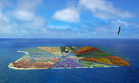在一個飄浮的“塑料島”上建設一個可以容納50萬人口的城市,這聽起來像一個“未來的水世界”(Waterworld)。如果荷蘭環保主義者有他們的辦法,這個設想可能很快成為現實。建設這個“再生島”(Recycled Island)的計劃,是從“北太平洋環流”(North Pacific Gyre)——從加利福尼亞到日本,清理4,400萬公斤廢塑料,在海上建設10,000平方公里的可持續生存空間。太陽能和風能將為島民提供電力,而可持續的漁業和農業將為他們提供食品。