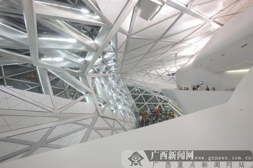 ![]() 廣州新電視塔是電視塔中的“戰(zhàn)斗塔”,號(hào)稱世界第一高塔。廣西新聞網(wǎng)見習(xí)記者賓士雄攝 9月26日上午,在結(jié)束“全國(guó)重點(diǎn)網(wǎng)絡(luò)媒體廣州亞運(yùn)行”第一站東濠涌后,采訪團(tuán)一行便馬不停蹄地趕到了珠江新城廣州市政務(wù)中心大樓,參觀廣州城市新中軸線。 首先參觀的是廣州市新聞中心,并在其會(huì)議室觀看了廣州新城市中軸線的資料片,未聞其景,先見其圖,頗有期待。半小時(shí)后,采訪團(tuán)一行來到廣州歌劇院、廣州電視塔,這兩個(gè)建筑讓全國(guó)網(wǎng)媒記者大開眼界。 廣州歌劇院:鋼筋鐵骨 建設(shè)難度超越鳥巢 廣州歌劇院設(shè)計(jì)靈感來源于一個(gè)古老的傳說。相傳古時(shí)候有一塊巨型礁石屹立于珠江,人們稱它為海珠石,在廣州2200多年的歷史記載中,海珠石一直被古人當(dāng)做神跡供奉。它是陽(yáng)燧寶珠所變,經(jīng)過千年的江水沖刷,礁石光潔、渾圓如珠。“是誰(shuí)驅(qū)石到江心,天為羊城鎮(zhèn)古會(huì)”,這首流傳最廣的民謠說的就是這塊“海珠石”, 正因?yàn)檫@塊石頭的存在,人們才給這條江取名為珠江。珠江水的涌動(dòng)與海珠石的傳說給了扎哈?哈迪德設(shè)計(jì)“圓潤(rùn)雙礫”的最初靈感,因而造型被設(shè)計(jì)為“被江水沖刷形成的圓潤(rùn)雙礫”,如一大一小一黑一白的兩塊齊石安然坐落于珠江江畔一般。 廣州歌劇院建設(shè)定位為“國(guó)內(nèi)一流、國(guó)際先進(jìn)”,華南地區(qū)弘揚(yáng)高雅藝術(shù)、推動(dòng)國(guó)際文化交流的藝術(shù)表演中心。其占地面積42393平方米,總建筑面積73019平方米,由1800座的大劇場(chǎng)及400座的多功能劇場(chǎng),以及為三維外帷幕墻等設(shè)施組成,劇場(chǎng)空間強(qiáng)調(diào)藝術(shù)本位,混響時(shí)間1.6秒達(dá)世界水準(zhǔn)。 據(jù)工作人員介紹,為了表現(xiàn)設(shè)計(jì)的獨(dú)特風(fēng)格,廣州歌劇院使用了大范圍的飾面混凝土,并采用了空中曲面定位、異種鋼焊接、斜墻、斜柱、大跨度(36m)預(yù)應(yīng)力梁、全焊接、建筑節(jié)點(diǎn)等高難度技術(shù),難度系數(shù)高于鳥巢,施工工藝及質(zhì)量控制實(shí)屬全國(guó)罕有。 ![]() 廣州歌劇院造型獨(dú)特讓人大開眼界。廣西新聞網(wǎng)見習(xí)記者 賓士雄 攝 ![]() 走進(jìn)廣州大劇院就像走進(jìn)了未來世界。廣西新聞網(wǎng)見習(xí)記者 賓士雄 攝 廣州新電視塔:纖纖細(xì)腰 各個(gè)角度皆為風(fēng)景 自古以來,人類對(duì)高樓就有迷戀情結(jié)。據(jù)說,創(chuàng)世紀(jì)之初人類曾修建一座高塔,塔頂通天,喚作巴別塔。如今,在廣州,也可以找到類似的高塔。 據(jù)介紹,廣州新電視塔總高度600米,總建筑面積114,054平方米,位于廣州新中軸線(城市縱軸)與珠江景觀軸線(城市橫軸)的交匯處,天線桅桿與新中軸線重合,處于廣州市的幾何中心。新電視塔距珠江南岸125米,與海心沙島市民廣場(chǎng)和珠江新城隔江相望,其由上小下大的兩個(gè)橢圓,圓心相錯(cuò),逆時(shí)針旋轉(zhuǎn)135度,自然形成塔身中部“纖纖細(xì)腰”的形體,而且,由于旋轉(zhuǎn),造成塔身外形曲率的變化,也形成了各方向形體各異的觀賞效果。 采訪團(tuán)一行還特意搭乘觀光高速電梯從地下室直達(dá)483米的觀光層,高速電梯共有6部,每小時(shí)可運(yùn)送1400人登塔參觀。在到達(dá)位于84層的觀光廳時(shí),記者在現(xiàn)場(chǎng)發(fā)現(xiàn),周圍早已是人山人海,游客一波接著一波,有的人在大擺POSE照相留念,有的人在“貪婪”地欣賞空中美景,有的人在購(gòu)買亞運(yùn)吉祥物…… 據(jù)工作人員介紹,目前,廣州新電視塔的票價(jià)在一百多元左右,游客搭乘地鐵3號(hào)就能來到這里,未來還將增設(shè)觀光云梯、空中花園、空中漫步、城市平臺(tái)廣場(chǎng)、夜景燈光照明、高空娛樂設(shè)施等獨(dú)具個(gè)性的新穎場(chǎng)所,讓游客無論在地面高空、無論在東西南北、無論在白天黑夜都會(huì)有無與倫比的全新時(shí)空體驗(yàn)。