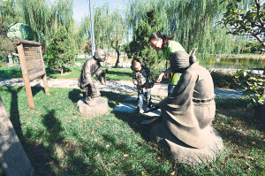 圖3為“司馬光砸缸”主題銅塑