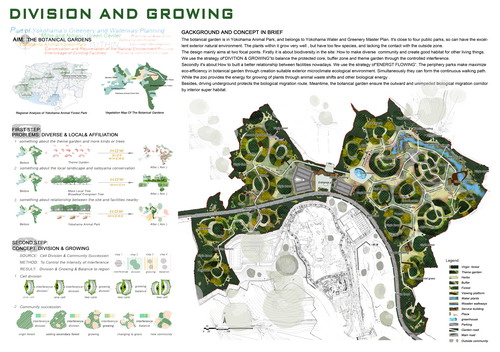 設計簡述: 植物園處于動物園內,屬于橫濱綠心計劃的一部分。周邊緊鄰4個市民公園,具有良好的外部自然環境。內部植物長勢較好,但植物群落單一,與動物園及周邊缺乏聯系。 設計主要針對兩個焦點。首先關于場地本身的生物多樣性:如何營造多樣化的植被群落從而為其他生物創造良好的生境。我們采用“分裂與生長”的策略,通過可控制的干擾疊加,讓核心保護群落,緩沖帶,專類園最終達到生態平衡。 第二個焦點是如何更好的聯系周邊的設施。我們提出 “能量流動”策略。外圍公園通過創造適宜的外部小氣候生態環境,實現植物園內的生態效益最大化。同時創造了連續化的市民散步游線。動物園通過動物糞便等生物能的轉移,為植物園內植物的生長提供能量,并且通過地下行車保護了生物遷徙路線。而植物園內部則通過良好的生境保證了生物向外暢通的遷徙廊道。