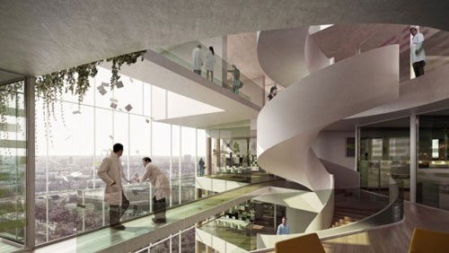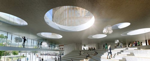 ![]() ![]() ![]() 建筑師:C. F. M.ller Architects 地點:漂布塘路,哥本哈根,丹麥 客戶:The Danish University and Property Agency 景觀設計:SLA 工程師:Ramb.ll 合作伙伴:Aggebo&henriksen, Cenergia, Gordon Farquharson, and Innovation Lab 面積:35000平米 攝影:C. F. M.ller Architects C. F. M.ller Architects建筑事務所、SLA事務所和Ramb.ll事務所共同被委托負責哥本哈根大學的擴建項目。擴建項目將會對城市景觀帶來很大的變化,其中的科學大廈更是一個標志性的建筑。 潘農園的擴展項目的目標是為現代研究和教學創造最佳環境。科學大廈則是整個潘農園和北校區的標志。新園區也將有助于周邊地區和城市的發展。 科學大廈有16層,大廈下面是一系列小型建筑群,包括視聽室、教室、食堂、展覽實驗室、會議室和咖啡書店。其中最吸引人的部分是擴展科學廣場,也是整個建筑群的社交核心。廣場的主入口是主要的社會交際區,連接了潘農園區的所有功能項目。 新潘農園區采用一個開闊、外向式的設計,透明的第一層能模糊建筑和城市的界線。公眾也可以去樓頂,樓頂有咖啡店、休息室和觀光處。建筑和建筑之間的空間會被設計成廣場或者花園,內配有涼亭和座椅,這些區域可以作為書房和辦公室用,同時也是城市綠洲。 這個項目也將是節能的先驅,它有丹麥最節能實驗室,從通風系統出來的廢棄能量將被回收使用在建筑整體能量平衡上。 ![]() ![]() ![]()