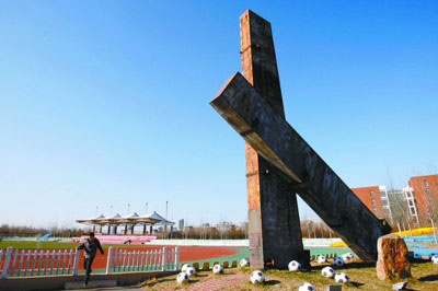 ![]() 用五里河體育場鋼件制成的紀念雕塑