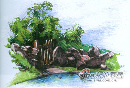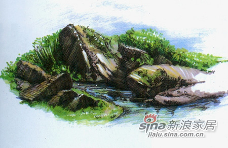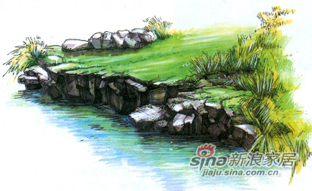 節(jié)約型自然風(fēng)格 快節(jié)奏的都是生活使人們渴望回歸自然的心理日趨迫切。自然清新的設(shè)計(jì)就好像把對(duì)象輕輕放在大自然之中,所有的疲憊和倦怠隨之煙消云散。自然主義風(fēng)格意味著取材及加工原始,節(jié)約,以不失自然風(fēng)貌為準(zhǔn),源于自然,融于自然,如駁岸設(shè)計(jì),摒棄工業(yè)裝飾元素,體現(xiàn)了對(duì)現(xiàn)代工業(yè)的反叛和返璞歸真的愿望。用不加雕琢的石頭堆砌了駁岸,既能防止溪水沖刷而造成的水土流失,又不破壞原有的生態(tài)環(huán)境。石塊肌理斑駁,小草叢生于石縫中,整個(gè)景觀就像土里長(zhǎng)出來(lái)的一樣自然。