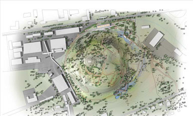 ![]() ![]() ![]() ![]() FoRM事務所和AID事務所受聘改造烏克蘭頓涅茨克(Donetsk)一個原工業(yè)場地。頓涅茨克是烏克蘭一座重要的煤炭和鋼鐵工業(yè)中心。改造項目的一期工程將建造一座實驗性的藝術中心,設置在一個新的圓形公園里,并將一座45米高的礦渣場也一并改造了。工程主要的目標是對過去的工業(yè)景觀進行社會的、經濟的和生態(tài)的改造,形成一個文化藝術的聚集地。 這個名為“IZOLYATSIA”的項目將通過仔細調查后進行創(chuàng)意設計,制造富有活力的環(huán)境,促進文化行業(yè)的交融和對話。一些廢棄的場地將回收后變成“綠色”場地,成為新的增長點。礦渣場“Terrikon” 也將成為一個新的綠色公共空間,并為將來其他建筑的建設奠定了基礎。