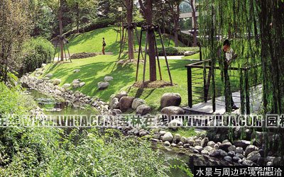 對策二:師法自然,豐富水景內容 濱河景觀生態規劃總的目標是改善河道景觀結構,加強景觀功能,提高環境質量,促進濱河景觀的持續發展 。 駁岸的處理 現在市郊水景住宅中對自然河道的整治往往采取“襯”的方法,即鋼筋水泥護襯水系。其實自然的水系是一個有機體,是一個生態系統,水泥襯底和護襯之后,使水系與土地及其生物環境相分離,便失去了自凈能力,從而加劇了水污染的程度。相反,如果利用水系形成一個生態環境系統,則可成為一個城市中多種生物的棲息地,同時可以凈化水質。事實上,生態健全的水系構成綠色通道網絡,恰恰最具蓄洪、緩解旱澇災害的能力。 設計時就應運用生態駁岸,即指恢復后的自然河岸或具有自然河岸“可滲透性”的人工駁岸,它可以充分保證河岸與河流水體之間的水分交換和調節功能,同時具有一定抗洪強度。 生態駁岸除護堤抗洪的基本功能以外,對河流水文過程、生物過程還有諸如滯洪補枯,調節水位,增強水體的自凈作用,為河流生物提供棲息等多種功能。 在設計運用中,可以采取以下幾種形式: (1)自然原型駁岸:主要采用植被保護河堤,以保持自然堤岸特性,如種植柳樹、水楊、白楊、榛樹以及蘆葦、菖蒲等具有喜水特性的植物,由它們生長舒展的發達根系來固著堤岸,加之柳枝柔韌,順應水流,增加其抗洪、保護河堤的能力。 (2)自然型駁岸:除種植植被外,還采用天然石材、木材護底,以增強堤岸抗洪能力,如在坡腳采用石籠、木樁或漿砌石塊(設有魚巢)等護底,其上筑有一定坡度的土堤,斜坡種植植被,實行喬灌草相結合,固堤護岸。 (3)多種人工自然型駁岸:在自然型護堤的基礎上,再用鋼筋混凝土等材料,確保大的抗洪能力,如將鋼筋混凝土柱或耐水圓木制成梯形箱狀框架,并向其中投入大的石塊,或插入不同直徑的混凝土管,形成很深的魚巢,再在箱狀框架內埋入大柳枝,水楊枝等;鄰水側種植蘆葦,菖蒲等水生植物,使其在縫中生長出繁茂、蔥綠的草木。 遵從自然的城市河流和濱水區設計 濱水區是生態系統中自然因素最為密集、自然過程最為豐富的地域,可以說,這里是人類活動與自然過程共同作用最為強烈的地帶之一。 河流濱水地帶是典型的生態交錯帶(兩種不同類型的自然環境的交界地區被生態學家稱為生態交錯帶[Ecotone])。這里物質、能量的流動與交換過程非常頻繁,河流濱水地帶處于水陸交界邊緣,正是典型的生態交錯帶;與這種生態過程相適應,水濱的植被表現為物種豐富、結構復雜的自然群落形式。 河流也是最重要的生態廊道之一。生態系統中的能流、物流和物種常沿河流進行遷移,適應于這種生態過程.自然狀態下的河岸帶常表現為連續分布的綠色植被帶,景觀生態學中對其定義為“河流廊道”。 河流和濱水區發生的各種自然過程都有相適應的自然形式。因此在水景住宅的開發建設和對河流的整治改造過程中,如何恢復并促進這些自然過程,積極利用和發揮各種自然形式應是規劃設計的出發點和立足點。另外,這些自然過程和自然形式并非孤立存在而是緊密交織、相互促進的:因此,自然過程和自然形式的重疊交織也要求城市河道和濱水區的規劃設計采取統一協調的系統化途徑。建議在對這些水景住宅的構成要素進行規劃時,采取以下措施: (1) 降低臨水居住建筑密度,或將建筑一、二層架空,使濱水區空間與居住區內部空間通透。 (2) 調整臨水空間的建筑、街道的布局方向,形成風道引入水濱的水陸風,并根據交通量和盛行風向使街道兩側的建筑上部逐漸后退以擴大風道,降低污染和高溫,豐富街道立面空間。 (3) 保護居住區內河流沿岸的溪溝、濕地、開放水面和植物群落,構成一個連接建成區與郊野的連續暢通的帶狀開放空間,利用它把郊外自然空氣和涼風引入小區內,改善環境質量。 (4) 小區內的河流開放空間廊道還應與小區外的開放空間系統組成完整的網絡。線性公園綠地、林蔭大道、步道及自行車道等皆可構成水濱通往居住區外的聯系通道。 (5) 建立完整的河流綠色廊道,即沿河流兩岸控制足夠寬度的綠帶,在此控制帶內嚴禁任何永久性的大體量建筑修建,并與郊野基質連通,從而保證河流作為生物過程的廊道功能。 (6) 水系廊道綠地還應向居住區內部滲透,與小區內綠地構成完整的綠地網絡。 (7) 就水濱植被設計的層面來說,在“設計途徑必須適應場地自然過程”的觀念的指導下,可以得到多種水濱植被設計的原則: 綠化植物的選擇:以培育地方性的耐水性植物或水生植物為主;同時高度重視水濱的歸化植被群落(naturalized plant communities),它們對河岸水際帶和堤內地帶這樣的生態交錯帶尤其重要。 城市水濱的綠化應盡量采用自然化設計。不同于傳統的造園,自然化的植被設計要求:①植物的搭配——地被、花草、低矮灌叢與高大樹木的層次和組合,應盡量符合水濱自然植被群落的結構,避免采用幾何式的造園綠化方式。②在水濱生態敏感區引入天然植被要素,比如在合適地區植樹造林恢復自然林地.在河口和河流分合處創建濕地,轉變養護方式培育自然草地形成,以及建立多種野生生物棲息地。這些自然群落具有較高生產力、能夠自我維護,只需適當的人工管理即可,具有較高的環境、社會和美學效益,同時在耗能、資源和人力上具有較高的經濟性。 對策三:立足本土文化,勇于開拓創新 每一個景觀都