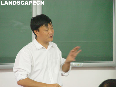 來自加拿大寶佳國際建筑師有限公司的高志先生,授課理論聯系實際,首先向學員明確了規劃師是做什么的問題,他認為,規劃師是做系統的,即建立一套高效實用的動態經營體系,規劃是一個過程,而不是一個結論。而建筑規劃的實質則要從標準、次序、尺度和語言四個方面來考慮,并用不同國家人們見面時問候語的不同而說明,對待不同的小區,要用不同的語言,不是強調哪一種問候語更合理,而是更合適。高志先生以他們做的北京運河城市段(一期)景觀規劃及城市設計為例,指出在做規劃之前,必須先滿足生態要求,要知道我們不能做什么,這個理論來源于俞孔堅博士提出的“反規劃”理論。在此案例分析中,還涉及到其他理論知識,如島嶼生態學、拓撲理論等,可見,景觀設計以及規劃設計都是一門建立在科學基礎上的學科,大概是在國外留學的經歷,使高志先生更加注重設計的理論和科學性,規劃也是一門聯系廣闊的學科,不論是與經濟還是數學程式和物理現象的出現,都有著密切的聯系。 ![]()