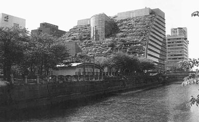 ACROS福岡臺階狀屋頂花園位于福岡市中央?yún)^(qū)天神地區(qū)。建筑ACROS福岡內(nèi)有寫字樓、商店等民間設(shè)施以及福岡交響樂演奏禮堂、國際會議中心等具有國際性、文化性、信息性的公共設(shè)施。為了建造能夠使臺階狀屋頂花園與建筑南側(cè)的公園連為一體的綠化空間,設(shè)計者有意把整個建筑的1/4處理為地下空間,把地上1~13層(60m)的臺階狀屋頂設(shè)計為屋頂花園。 6.1 設(shè)計概要 把建筑ACROS福岡的臺階狀屋頂當成一座山體處理,以花鳥風月為主題,表現(xiàn)“春之山、夏之蔭、秋之林、冬之森”植物季相變化的空間,使南側(cè)公園的綠化植被與臺階狀屋頂?shù)幕熘仓脖蝗跒橐惑w(圖6、7)。每一層植被由臺階屋頂植被與栽植于下一層墻體上容器內(nèi)的植被組成,整體上仿佛山脊植被與山谷相連。竣工數(shù)年后植被已經(jīng)郁郁蔥蔥,在城市中央形成了一座綠色的“人工山林”,成為福岡市民娛樂休憩的理想空間。 種植設(shè)計以位于京都的皇室園林——修學院離宮斜坡上的臺階狀大塊混植為藍本,在從1層到13層的臺階屋頂上,利用15種混植手法種滿了枝葉色彩富有變化的常綠樹與落葉樹。同時,每年都有鳥類帶來的植物種子落在此地,現(xiàn)在樹木種類已經(jīng)達到110余種,隨著樹木的生長發(fā)育,植物景觀日益豐富。 6.2 技術(shù)試驗調(diào)查 施工之前,對人工土壤的性能、排水系統(tǒng)、灌溉系統(tǒng)、樹木支柱保護、景觀、臺階花園的管理等進行了預(yù)備試驗,建成后, 還進行了人工降雨試驗。在經(jīng)歷多次的臺風危害以及1994年夏季大干旱后,植物依然生長茂盛,是日本屋頂花園技術(shù)的成功展示和優(yōu)秀范例。 對土壤的比重、經(jīng)年變化、保水性能、排水性能、耐風性能(支柱、防止飛散)、管理、施工等項目進行了綜合試驗后,選擇了質(zhì)輕、保溫與保水性優(yōu)良的人工土壤。屋頂?shù)挠晁ㄟ^土壤滲透到下一層臺階,最終到達地面而被排掉。 另外,臺階狀屋頂花園建成后,沒有進行過人工灌溉。現(xiàn)已達到了近于無灌水、無農(nóng)藥、無肥料的生態(tài)型管理要求。 6.3 施工過程 6.3.1鋪設(shè)耐壓透水通氣板 對于人工栽植基盤的綠化來講,排水與通氣是最重要的條件。在長期土壤干燥的情況下,可以通過灌溉來解決,但土壤過濕會對植物的生長造成危害。土壤的排水性與通透性具有直接的關(guān)系。所以,鋪設(shè)耐壓透水通氣板是屋頂花園施工時最主要的作業(yè)之一,同時,該層也具有一定的防止植物根系穿透的作用。 6.3.2鋪設(shè)透水無紡布 透水無紡布對調(diào)節(jié)水分與空氣的流動具有重要作用,并可以防止土壤顆粒的下滲。一般需要鋪設(shè)屋頂綠化面積的120%,即如果綠化面積為100m2的話,則需要鋪設(shè)透水無紡布120m2。 6.3.3填入特制栽培基質(zhì) 先填入一層排水層,再填入特制栽培基質(zhì),充分澆水后,進行輕輕碾壓。 6.3.4栽植植物 多把盆栽苗木從盆缽中移出后連帶土坨一并栽植。 6.3.5鋪設(shè)表層保護基質(zhì) 特制栽植基質(zhì)為白色粒狀物,在栽植植物的縫隙鋪設(shè)3cm的表層保護基質(zhì)。 6.4 降低環(huán)境負荷 竣工以來,有關(guān)的大學研究室與技術(shù)研究所對臺階狀屋頂花園的熱環(huán)境進行了調(diào)查。夏季水泥屋頂?shù)臏囟缺扔芯G化的部分高出20余攝氏度,栽植土壤的地溫也比氣溫低近10℃,綠化還降低了室內(nèi)溫度。建筑各側(cè)的氣溫,以有臺階狀綠地的南面為最低,這是由于屋頂花園植物的降溫作用所致。由于屋頂綠化所使用的人工土壤具有優(yōu)良的保溫性與保水性,降低了空調(diào)的負荷,由植物的蒸騰作用帶走熱量,抑制了周邊氣溫的上升。臺階狀屋頂花園不僅創(chuàng)造了城市中優(yōu)美的景觀,還降低了環(huán)境負荷,同時抑制了日益嚴重的城市熱島現(xiàn)象。 6.5 栽植植物種類 竣工時共栽植植物76種,后來由于追加以及鳥類的帶入,現(xiàn)在已經(jīng)達到110種以上。其中常綠混植樹種10種,半常綠混植樹種2種,常綠、落葉混植樹種3種,落葉混植樹種13種,混植修剪綠籬樹種3種;臺階下部混植樹種8種,小喬木21種,藤本匍匐植物5種,大面積栽植樹種7種,地被植物3種,最下層栽植樹種13種。另外,從1996—2000年追加補栽的樹種30種,由鳥類糞便帶來的植物3種。
