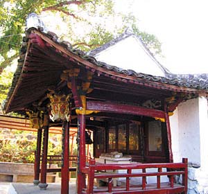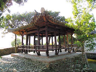 外線——山水之間樸實無華的路亭。此類古亭一般位于兩個山區(qū)村落之間的山嶺上,距居民點較遠(yuǎn),都緊靠路邊而設(shè),或設(shè)在道路的交匯處,或竣嶺的半山腰處,通常以石筑墻,堅固耐久,也有少量是木構(gòu)的,外表簡陋古樸。 中線——村莊外圍頗具宗教色彩的憩亭。此類的亭子除了具有一般的休憩功能外,還具有一些特殊的功能,如還具有偶像崇拜的功能,頗具宗教色彩。平面形式以四方形居多,屋頂大多為歇山頂。一面以石筑墻,在墻面上建壁隴,供奉三關(guān)大帝或土地爺神像,余三面有木制美人靠座,供過路人休息。 內(nèi)線——村莊內(nèi)部布局精良的涼亭。村莊內(nèi)部的涼亭最突出的特征是布局規(guī)劃獨具匠心。在立面構(gòu)圖方面,是視覺焦點,是景點同時又是觀景點。在平面布置方面,是構(gòu)圖中心,為居民提供社交的公共場所。在空間序列上,是鄉(xiāng)村園林中的一種點綴、構(gòu)圖的交集點。 內(nèi)核——庭院內(nèi)造型靈巧的涼亭。庭院內(nèi)部的涼亭,突出的特征就是無論造型、性質(zhì)與功能、屋頂形式都極盡變化之能事。在建亭位置選擇、周圍景觀的配置上都十分講究,常寓情于物,移景入情。這類亭子最具代表性的是方巷村的接季閣和蒼坡的望兄亭以及巖頭村的映月亭。如巖頭村塔山之北的水亭祠,又叫琴山書院。從院門入內(nèi),依次為影壁、泮池、月臺、儀門、秋月池、水亭、中堂。秋月池中央是條石精砌的水亭,亭名是“映月亭”。