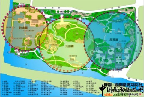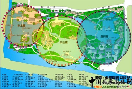 ![]() 規(guī)劃鳥瞰 意境創(chuàng)作 秋水篇:靜園構(gòu)園之始,"種竹養(yǎng)魚,荷香數(shù)里"。游魚觀賞應(yīng)為靜園特色之一。一泓清池,板橋臥波的布局,讓人聯(lián)想起《莊子·秋水》篇中描寫濠梁觀魚的故事。這應(yīng)是符合原創(chuàng)作意境的。 風荷篇:集中反映虛廓園凌波翠蓋,淡香清遠的荷蓮特色景觀及圣潔的品格。 云山篇:既是中部山水景觀創(chuàng)意的描寫,更是對虞峰千頃,滿湖云山景觀的概括。 ![]() 傳統(tǒng)園林規(guī)劃,首要的是山水創(chuàng)作與布局 "園林之勝,唯是山與水二物"。山水對傳統(tǒng)園林規(guī)劃的重要性,大概有以下幾個方面的緣由: 1.山水是大自然中自然風景資源中的主要內(nèi)容。中國傳統(tǒng)園林的本質(zhì)是自然山水空間的藝術(shù)描寫。"縮千里江山于方寸",在諸多景觀元素中,山水景觀是園林的核心與主體。有了山水布局,構(gòu)起一園之框架,其他景觀元素就能得以拓展。 2.山水景觀,山有峰、巒、巖、崖、洞、壑、灘、磯之分;水有湖、塘、池、河、溪、澗、泉、潭之別,可以經(jīng)營、創(chuàng)作出豐富多彩、各具個性的景觀形象。 3.山水之間,山具有雄渾、蒼勁、壯觀之陽剛的特質(zhì),是園林空間的骨架和支撐。水以明澈、晶瑩、委宛、靈動的柔美品格見長,是園林中最富動感、充滿勃勃生機的景觀形象。山水剛?cè)嵯酀ハ嗳诤涎a充,"山得水而活","水得山而媚",各自因?qū)Ψ酵宫F(xiàn)出自身的風景價值。山水相映的景觀,才是生動和精彩之筆。 4.山水景觀傳承著豐富的歷史文化信息,無論是層巒疊障、奇峰幽谷,還是曲溪深澗、懸潭飛瀑,所展現(xiàn)的深藏若虛的深邃幽遠之境中,蘊藏著眾多的人文歷史、神話傳說和宗教崇拜,體現(xiàn)了一種"自然之道"與"回歸自然"的"天人合一"神圣理念。 江南文人山水園林其魅力在于景觀設(shè)計和意境創(chuàng)作。 影響靜園虛廓園山水經(jīng)營的有幾個方面: 1.藍田輞川: 為唐代山水田園詩及南宗水墨畫代表人物王維之別業(yè),位于終南山下輞川山谷。輞川對造園藝術(shù)影響極為深遠,使得后人造園紛紛學(xué)輞川。典型的例子,要數(shù)明萬歷年間監(jiān)察史錢岱在常熟所造的"小輞川"。據(jù)園記記載,"此園絕類唐代詩人王維藍田輞川", 雖然小輞川已不復(fù)存在,但靜園、虛廓園卻是在小輞川的園址上經(jīng)營發(fā)展起來的,在園中至今保存著小輞川中的"梅泉志勝"假山(靜園)和竹里館(虛廓園)遺存。在它們之間可能存在著某種聯(lián)系。靜園、虛廓園山水布局簡潔,不太曲折,與蘇州園林中小型園林明顯不同。 2.洞天福地,蓬島瑤池 虛廓園東部有假山,題名"小有天"。這個名稱源于道家的洞天福地,為仙人之居(地仙),它包括海上十洲三島和陸地的洞天福地。洞天福地又有十大洞天、三十六小洞天和七十二福地。小有天,據(jù)《太平御覽》卷四十說"王屋山有小天,號曰小有天,周迴一萬里,三十六洞天之第一焉。" 三島,即是蓬萊、方丈、瀛洲。蓬島瑤池,這是十分古老又流傳極其廣泛的話題,包含了海島神山和昆侖瑤池兩個神話體系,對中國園林,尤其是皇家園林的發(fā)展,有著極其深刻的影響。瑤池,傳說在昆侖山頂,周穆王曾在此宴請西王母。后來,兩個神話被結(jié)合在一起,變成一種向往和追求的理想,作為造園塑造景觀的題材。"一池三山"模式成為后世宮苑山池之筑的一個范例。 3.滄浪之水 小有天假山向北延伸,有嘯臺、盤磯和"虛廓子濯足處"。這是一則與"滄浪之水"相關(guān)連的話題。"滄浪之水清兮,可以濯我纓;滄浪之水濁兮,可以濯我足。"是一首有名的滄浪之歌,表示出清濁分明的慨嘆。以"滄浪"為題材來營造園林山水景觀的,在園林中十分常見。如拙政園、怡園、半野園、澄碧山莊(常熟)均有"小滄浪"之景;網(wǎng)師園水邊小筑題額"濯纓水閣";可園有屋三楹,取名"濯纓處"等等。其中最為著名的是滄浪亭。該園"構(gòu)亭北碕,……前竹后水,水之陽又竹,無窮極",為北宋文學(xué)家蘇舜欽按照《楚辭o漁父》的意境構(gòu)筑。《楚辭o漁父》說的是滄浪漁父用《滄浪之歌》勸說屈原隨世沉浮,超脫世俗的故事。蘇舜欽因無罪遭貶,借"滄浪"的涵意渲泄內(nèi)心的憤懣,"跡與豺狼遠,心隨魚鳥閑","高軒面曲水,修竹慰愁顏",表示退居山林的心境。從中可以知道,"滄浪之水"包含著退隱避世、超塵脫凡、滌穢洗襟、潔身自好的三層意思。這也正是園林景觀中的涵意。 4.濠濮之想與魚鳥之親 趙烈文靜園的前身為吳俊基的"水壺園",又名"水吾園",以種竹養(yǎng)魚、荷香數(shù)里聞名遠近。以魚作為觀賞對象,以得濠濮之想和魚島之親,在江南園林中此風亦甚盛之。濠濮間想,出自《莊子o秋水》篇。留園中部池中"小蓬萊"島上有濠濮亭,題額"林幽泉勝,禽魚自親,如在濠上,如臨濮濱。昔人謂會心處便自有濠濮間想,是也。"其意來源于《世說新語o言語》篇:簡文帝入華林園,顧謂左右曰:"會心處不必在遠,翳然林水,便自有淳,濮間想也。覺鳥獸自來親人。" "行到觀魚處,澄澄洗我心",園林景觀"濠濮"之情,有知魚之樂的忘我境界;有醉心山之林,情怡丘壑,對身心自由的追求;有山水魚鳥相親,人與自然的和諧統(tǒng)一。這就是"濠濮間想"的思想內(nèi)涵。 5.世外桃源 楊云史有虛廓園《壽而康室廊下通桃花塢》一文,反映出桃花塢應(yīng)是虛廓園中重