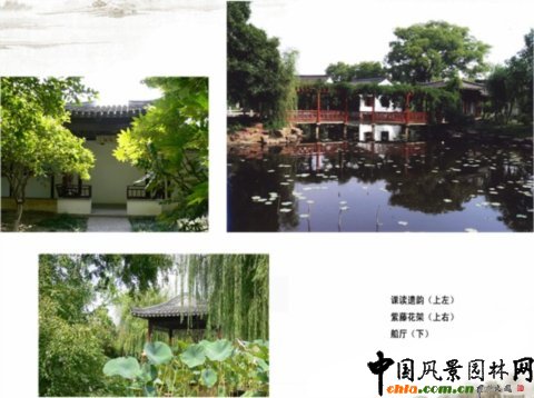 南借環城河水 融水入園 ![]() 一、 靜園、虛廓園現有水體的形狀、大小基本不變。 二、中區于山體的南部開挖水面,并與東、西區的現有水體相連,輔以溪流澗谷,瀑布淵潭,形成完整的水系,營造出山水景觀畫面。規劃水體面積約10.69畝,占全園面積24.4%。 三、環繞園林的南、西側有內城河繞園而過,水體面積約7.62畝。規劃將這一灣水體劃為園林,既可擴大園林面積,又突出和豐富水景景觀。 靜園規劃 靜園占地面積約10.4余畝,其中水面3.6畝,園以水勝。 布局以水為中心,景點環池而筑。保留池中一道曲折石梁,自南向北穿水而過,形成濠梁景觀。 靜園整體格局尚存,但景觀建筑大多已毀,僅存似舫、柳風橋、梅泉志勝諸景。需要改造、重新規劃的景點有: ①西部長廊 ②先春榭 ③天放樓與能靜居 ④風景濠梁亭 ![]() 實踐篇 景點修復 風景濠梁亭: 這里表現的是有知魚之樂的忘我境界;有醉心山林,情怡丘壑,對身心自由的追求;有山水魚鳥相親,人與自然的和諧統一。 ![]() 先春榭: 位于水池的南部,并借其規劃了一組小庭院。庭中及周邊種植迎春、梅花,形成早春景觀。 ![]() ![]() 柳風橋,靜溪: 中心水池西北隅有柳風橋,內城河水通過橋洞入園,名靜溪。據記載,溪北有天放樓,為趙烈文藏書處。圍繞藏書、讀書之意,這里安排一組庭院建筑,與歷史記載大體一致。 ![]() 實踐篇 虛廓園規劃 虛廓園占地面積約20.6畝,以4畝左右的荷池為中心, 借山取景,環池布置景點。已恢復或保存完好的景點及建筑有:蓮花世界(不倚亭)、水天閑話、雪北香南樓(瓊玉樓)、邀月軒、假山小有天等。 準備恢復的景點和主要建筑有: ①主入口 ②水天閑話 ③君子長生室與娛暉草堂 ④壽爾康室 ⑤梅花廳與梅花田 ⑥楊柳天 ⑦雪臺。 ⑧清風明月閣 ![]() 蓮花世界(不倚亭): 東區池中廣植蓮花,"平鋪錦云蓋漣漪",為虛廓園中的特色景觀。池中心有曲橋通敞軒,名蓮花世界,又名不倚亭,構成景觀中心。蓮,出淤泥而不染,濯漣漪而不妖,君子般的特性,常常被借以比喻文人的純潔品格。 ![]() ![]() 水天閑話: 建筑臨池,座北朝南,三開間,硬山脊式,半架空于荷池之上,內檐裝修恢復鴛鴦廳格局。據記載,廳內有銀杏木屏風門將其分為南北兩廳,南廳有匾額"歸耕課讀廬",屏門刊刻《蘭亭集序》。北廳額"水天閑話"。庭中有白皮松、香樟,并有太湖石山一座,名"妙有"。 ![]() 君子長生室、娛暉草堂、壽爾康室: 主入口建筑群西面的側院布置君子長生室、娛暉草堂、壽爾康室兩組庭院。君子長生室東臨水天閑話,西與娛暉草堂相鄰。庭院中植白皮松、垂絲海棠、枇杷等花木。建筑采用回頂、花藍式樣。君子長生室僻作曾樸紀念室(展室),其旁有古紅豆樹一株,十分珍惜,成為庭院中的重要景觀。 ![]() 梅花廳、梅花田: "西塢數畝地,種梅百余樹"(楊云史《梅花田》)。梅,蒼勁挺秀,暗香清幽,歷來是造園的首選景觀。"素艷雪凝樹,清香風滿枝","萬花敢向雪中發,一樹獨先天下春",由于它在冰中育蕾,雪里開花,不畏嚴寒,獨步早春,常常被視為堅貞和剛毅的化身。園林景觀所表現的意境也正是這點。 ![]()