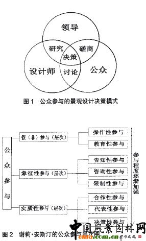 一種有效推動(dòng)我國(guó)風(fēng)景園林規(guī)劃設(shè)計(jì)的方法——公眾參與 摘要: 分析我國(guó)當(dāng)前風(fēng)景園林規(guī)劃設(shè)計(jì)過(guò)程中存在的弊端,提出解除弊端的有效方法——公眾參與;同時(shí)介紹了國(guó)外公眾參與風(fēng)景園林規(guī)劃設(shè)計(jì)的發(fā)展過(guò)程及對(duì)我國(guó)的影響,提出了促進(jìn)我國(guó)公眾參與風(fēng)景園林規(guī)劃設(shè)計(jì)的建議和適合我國(guó)公眾參與景觀設(shè)計(jì)的決策方法。 關(guān)鍵詞:風(fēng)景園林;景觀設(shè)計(jì):研究;公眾參與;決策 文章編號(hào):1 000—6664(2004)01—0076—03 中圖分類號(hào):TU985 文獻(xiàn)標(biāo)識(shí)碼:A 我國(guó)園林自其產(chǎn)生以來(lái)都是遵循“以人為本”的指導(dǎo)思想,不同的是在封建社會(huì)園林是為封建統(tǒng)治階級(jí)服務(wù),而現(xiàn)代風(fēng)景園林設(shè)計(jì)是為全民所服務(wù)。現(xiàn)代風(fēng)景園林規(guī)劃設(shè)計(jì)的發(fā)展正在經(jīng)歷一場(chǎng)平民化和大眾化的歷程,轉(zhuǎn)變?yōu)橐陨鐣?huì)服務(wù)為導(dǎo)向。風(fēng)景園林作為社會(huì)普通人生活的一部分來(lái)到公眾的生活中。改革開(kāi)放以來(lái),我國(guó)社會(huì)經(jīng)濟(jì)發(fā)展迅猛,城市風(fēng)景園林建設(shè)得到前所未有的發(fā)展,優(yōu)秀的風(fēng)景園林規(guī)劃設(shè)計(jì)作品層出不窮,極大地改善了人們的生活環(huán)境。然而我們也看到,各地出現(xiàn)一些景觀價(jià)值不高、不為人們所喜愛(ài)、使用率低的風(fēng)景園林作品。 1 我國(guó)風(fēng)景園林設(shè)計(jì)過(guò)程中存在的弊端 1.1風(fēng)景園林設(shè)計(jì)行政管理中的非理性 我國(guó)的風(fēng)景園林設(shè)計(jì)常因個(gè)別領(lǐng)導(dǎo)的意見(jiàn)和喜好而決定,為盡快出“政績(jī)”,各地都掀起一股建設(shè)超大尺度的、不適合使用的“城市中心廣場(chǎng)”、“城市景觀大道”的熱潮,追求氣派,追求最大、最長(zhǎng)、最寬,強(qiáng)調(diào)幾何圖案,攀比之風(fēng)盛行。 1.2設(shè)計(jì)師的自我表現(xiàn)及其專業(yè)素養(yǎng)的局限性 現(xiàn)今一些風(fēng)景園林規(guī)劃設(shè)計(jì)趨向于突出設(shè)計(jì)師本人的喜好,憑自己的專業(yè)知識(shí)、藝術(shù)天賦和直覺(jué)進(jìn)行設(shè)計(jì)。設(shè)計(jì)師由于自身的理論和專業(yè)修養(yǎng)具有某種局限性,往往靠模仿別人的作品進(jìn)行設(shè)計(jì),而忽視城市具體的氣候、地理、土壤條件,喪失它賴以生存的地方特色和民族特色,造成城市景觀的貧乏。 1.3公眾參與機(jī)會(huì)及其參與意識(shí)的缺乏 我國(guó)是人民民主專政國(guó)家,政府是人民的政府,它始終維護(hù)人民的利益,于是人民對(duì)政府形成了一種信任依賴關(guān)系;另一方面,受我國(guó)長(zhǎng)期實(shí)行的計(jì)劃經(jīng)濟(jì)的影響,社會(huì)公共事務(wù)都由政府一手負(fù)責(zé),公眾很難有參與的機(jī)會(huì),從而導(dǎo)致城市公共風(fēng)景園林設(shè)計(jì)中缺少公眾的參與。長(zhǎng)期以來(lái)我國(guó)政治經(jīng)濟(jì)的高度集權(quán)性和高度計(jì)劃性,抑制了公眾參與的積極性及個(gè)性的發(fā)揚(yáng)和社會(huì)批判精神。 2 解除弊端的有效方式——公眾參與 當(dāng)前風(fēng)景園林規(guī)劃設(shè)計(jì)的過(guò)程,以設(shè)計(jì)師和領(lǐng)導(dǎo)為主導(dǎo),而缺少真正的使用者——公眾的參與,忽視傾聽(tīng)公眾的要求和愿望,越俎代庖的設(shè)計(jì)自然難以真正滿足公眾的需要。公眾是社會(huì)的主體,是社會(huì)根本利益之所在,風(fēng)景園林規(guī)劃設(shè)計(jì)合理與否,直接影響公眾的生活質(zhì)量,所以公眾最關(guān)注其周?chē)h(huán)境的發(fā)展。如在重點(diǎn)項(xiàng)目四川楊柳湖水庫(kù)工程的規(guī)劃設(shè)計(jì)中,通過(guò)公開(kāi)討論避免了其不合理規(guī)劃的實(shí)施;北京市在編制2008年綠色奧運(yùn)規(guī)劃、奧林匹克公園規(guī)劃及比賽場(chǎng)館設(shè)計(jì)過(guò)程中,多次舉行展覽,聽(tīng)取群眾對(duì)方案的意見(jiàn),收到很好的效果%因此,公眾能有效地對(duì)設(shè)計(jì)師和領(lǐng)導(dǎo)這兩個(gè)主體進(jìn)行制約,形成合理的公眾參與風(fēng)景園林規(guī)劃設(shè)計(jì)決策模式吲。三者相互影響、相互制約,綜合平衡各種使用者的需求,有利于克服片面性(圖1)。有了公眾的參與,能集思廣益,使決策更為科學(xué),增強(qiáng)設(shè)計(jì)項(xiàng)目的可操作性,避免設(shè)計(jì)師陷入形式的自我陶醉之中;能統(tǒng)一思想,有效實(shí)施規(guī)劃設(shè)計(jì),促進(jìn)市民對(duì)城市景觀的理解力和市民素質(zhì)的提高:能促進(jìn)監(jiān)督,減少暗箱操作等違規(guī)事件的發(fā)生,推動(dòng)風(fēng)景園林設(shè)計(jì)事業(yè)的健康發(fā)展。 3 西方公眾參與的發(fā)展過(guò)程及對(duì)我國(guó)的影響 二戰(zhàn)后的重建過(guò)程中,西方社會(huì)發(fā)展不平衡,社會(huì)矛盾日益尖銳。特別到20世紀(jì)60年代,隨著人權(quán)運(yùn)動(dòng)的興起,各種價(jià)值觀念和意識(shí)形態(tài)的碰撞,使得部分歐美國(guó)家的社會(huì)極不穩(wěn)定。當(dāng)局為了平息社會(huì)矛盾,被迫在