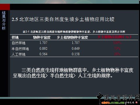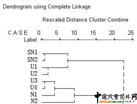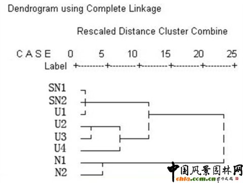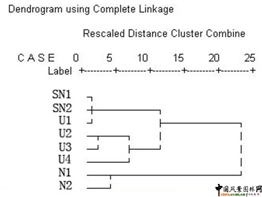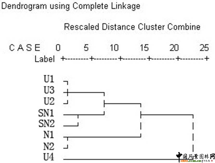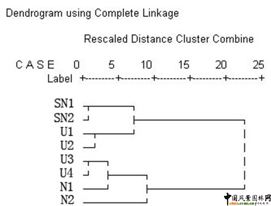 ![]() 3.小結 (1)北京地區三類自然度生境樹種頻度比較結果表明自然樣地物種頻度較人工樣地物種分布平衡。 (2)北京地區三類自然度生境物種多樣性與生長型關系比較結果表明隨著自然度降低,群落各生長型物種多樣性降低,體現出自然生境>半自然生境>人工生境規律。 (3)北京地區三類自然度生境群落聚類分析結果表明樣地基本按照自然度的不同分別聚類,僅海淀公園、紫竹院公園較特殊。 (4)北京地區三類自然度生境鄉土植物豐富度的關系為自然生境>半自然生境>人工生境。
