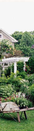 選擇主題 花園無論大小,確定一個風格主題是設計花園和選擇植物的前提。在這個花園定位為清新 浪漫的田園風格,無論你走在何處,總能被柔和清新的色彩和豐富的質感包圍著。白色花朵的植物和構筑物提亮了整個花園的色彩。 分隔空間 通過劃分花園區域,能讓花園變得更舒適實用。這個花園中有種植觀賞區域和供人放松的休憩區,不同的主題讓人行走在花園中注意力不斷被新的景觀元素吸引,產生移步換景的感覺,好像花園也變得更大了,收獲到更加愉快的花園體驗。 增加結構 涼亭、藤架、籬笆和花門等構筑物在花園中起著十分重要的作用,這些結構性的設計能增加花園中的視覺焦點,讓花園即使在冬季植物枯萎后,也能保持很好的結構形態。這里,白色的藤架和籬笆等構筑物不僅為花園帶來立體的視覺效果,也起到提亮花園色彩的作用。藤架為攀援月季等植物帶來提供了向上攀爬的空間。 攀援植物、多年生植物。。在樹木的襯托下格外清新悅目,展現出甜美的鄉村風格。堅實的藤架和園門被刷成白色,與建筑色彩相互融合,看起來十分協調。 以玫瑰為代表的粉色系植物簇擁在石板路兩邊,下面種植了貓薄荷,將人引入充滿魅力的的休閑區內。 薔薇Rose‘Carefree Wonder’下面種植了貓薄荷,左側是玫瑰rosa rugosa‘Fru Dagmar Hastrup’,下面種植了白色和粉色的一年生植物annuals。 一旦坐在帶有舒適座墊的鐵藝椅子上,完全置身與茂盛的花草之中,令人倍感放松。 薔薇‘Carefree Wonder’為花園增添了浪漫氣息。 鐵線蓮‘Will Goodwin’ 攀援在白色的籬笆墻上,它的花朵直徑有15厘米長,能持續整個夏天。 花園里的棚架不僅豐富了庭院層次,也為攀援植物提供了生長空間。這株玫瑰紅色的‘John Cabot’薔薇下面種植了白牡丹和美女櫻,色彩的對比為花園增加了清新柔美的感覺。 延續整個花園中的鄉村主題,一個白色的鳥浴盆為這個多年生種植園增加了視覺亮點。藍紫色飛燕草、玫瑰紅色的月季、粉色波斯菊和白色牡丹花由淺入深的豐富了庭院色彩。 挺拔的毛地黃給種植園增加了高度的變化。 以薔薇為主體的花園不僅美觀,也十分容易維護,這種花具有頑強的生命力。降低了花園的維護成本。 TIP專家解讀 了解英式田園風格 英國的風景式庭園采用的是典型自然式布局,模仿純天然景觀的野趣美,以自然式地形、水體、園路和植物組織庭園,體現出濃郁的自然情趣。 如何規劃布局 英式庭院向往自然,崇尚自然,因此它采用開放式的空間結構,大面積的自然生長花草是典型特征之一。自然的樹叢和草地,隨處可見的花卉綠植,注重花卉的形、色、味、花期和叢植方式。硬質構造物則采用天然木材或當地的石料,以使之融入周圍環境。 把握硬質景觀特點 以天然石材為主,形成自然美感的園路。園中還多用原木鋪成園路、臺階等。由于英格蘭地區氣候適宜,所以草坪作為主要道路鋪地材料,這充分體現出人與自然的融合。英式庭院構筑物較復雜,常見圓柱、涼亭、觀景樓、方尖塔和裝飾墻等;花架是英國風景式庭園中應用最多的建筑形式,常采用木材、石材、磚或混凝土,也有采用古典柱式植物組合成花架。 巧用裝飾元素 英式庭院中較多建造一些裝飾物,如:雕塑、自然噴泉水景、原木坐凳、日晷、供小鳥戲水的柱盆、花盆、石缽等。 如何搭配植物 植物以自然式種植為主,除了最具代表性的爬藤植物,如玫瑰、薔薇、鐵線蓮外,還應用大量喬木、花灌木、宿根花卉和地被植物,如:白樺、洋槐、黃楊、美人蕉、絲蘭、鼠尾草、熏衣草、萱草及多年生植物。植物都自然生長,不刻意的修剪,重視其色彩的搭配和相稱,突出體現自然植物的群落和特點。 戶外家具搭配 因為英式庭院呈現出的是花朵繁茂,清新自然的效果,庭院中又多用庭院里多用木質構筑物,如涼亭、花門、籬笆等,尤其以白色最具代表性。所以戶外家具最好是用和構筑物相同的材料。比如白色的木質家具搭配花朵圖案的舒適座墊和靠墊。