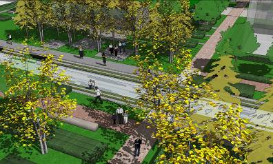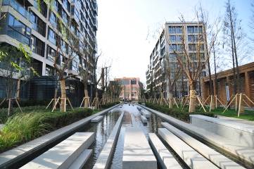 圖2 景觀效果圖 世博村整個(gè)社區(qū)注重國際多元化的個(gè)性風(fēng)格需求,在滿足各個(gè)地塊的性質(zhì)下將大社區(qū)的設(shè)計(jì)氛圍一體化是有需要慎重把握住設(shè)計(jì)尺度。要“個(gè)性”也需要“共性”,同時(shí)考慮臨時(shí)綠化的設(shè)計(jì)需要滿足世博會(huì)間高標(biāo)準(zhǔn)的使用要求,同時(shí)做好臨時(shí)綠化的投資造價(jià)控制避免過多的浪費(fèi)。同時(shí)D地塊中有大面積的屋頂綠化和斜坡覆土綠化、B地塊淺水渠的水質(zhì)循環(huán)和凈化,同時(shí)社區(qū)中保留和遷移了部分高大的喬木等一些技術(shù)問題也在項(xiàng)目之初得到了極大重視和考慮。考慮到社區(qū)內(nèi)水景造價(jià)問題,采用分時(shí)段水景概念,在保證每段水庭院都有永久固定小水景的前提下,對(duì)大面積水景考慮有水和無水的兩種景觀,將淺水池結(jié)合人的休憩停留的場(chǎng)地進(jìn)行趣味性的藝術(shù)處理。此方法將增加一些前期投入,但大大降低了后期的維護(hù)和管理費(fèi)用。池底的藝術(shù)化處理將給無水景觀帶來獨(dú)特的解決方法。 “村”概念的放大 世博村景觀強(qiáng)調(diào)打造“家園”“綠洲”“人文”“個(gè)性”的人性化居住社區(qū)。通過對(duì)住區(qū)環(huán)境的塑造,提升居住者對(duì)“村”的認(rèn)知感,“村”不是一幢樓,一套公寓,而首先是一片完整的社區(qū),一個(gè)美麗的“家園”。在高層、多層環(huán)抱的建筑圍合出的人工空間中創(chuàng)造出現(xiàn)代的生態(tài)綠洲,通過有機(jī)的組織,讓其自身成為一個(gè)可循環(huán)的生態(tài)環(huán)境,調(diào)節(jié)區(qū)域性的小氣候,讓人能最大限度的回歸自然,讓整個(gè)社區(qū)達(dá)到人與自然的和諧共生。每一個(gè)社區(qū)都將會(huì)創(chuàng)造出自己的“區(qū)域文化”,從項(xiàng)目開始策劃運(yùn)作,整個(gè)“人文”的創(chuàng)造就已經(jīng)開始,規(guī)劃設(shè)計(jì),建筑設(shè)計(jì),景觀設(shè)計(jì),是一步步地將文化的火種傳承并擴(kuò)大,甚至是一個(gè)系統(tǒng),并不停地延伸,國際性的社區(qū)是在開始之初就提出的概念。“個(gè)性”的創(chuàng)造是獨(dú)特并不代表著怪異,在吸收傳統(tǒng)景觀設(shè)計(jì)的前提下,以開放的眼界去創(chuàng)造出適合上海世博的景觀,使景觀成為世博村的另一個(gè)亮點(diǎn)與標(biāo)志。 居住理念的自然性和人工性