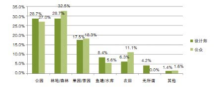 ■ 生產性景觀認知調查問卷 《景觀設計學》編輯部 2010年年初, 《景觀設計學》編輯部針對“ 生產性景觀(Productive landscape)”這一專題,特別展開了網絡與實地問卷調查,以期了解公眾對于“生產性景觀”的認知、喜好程度。此次調查共回收有效問卷269份,其中職業設計師143份,公眾126份。統計分析除了要了解社會對生產性景觀的普遍認識以外,還特別針對這兩類人群對比分析。職業設計師對生產性景觀能有更前瞻的認識?還是普通公眾對生產性景觀會有更有偏好? “生產性景觀”的范圍:種植業、林業、畜牧業及漁業所形成的農業景觀;具生態產出(如調解微氣候、凈化空氣等)功能性的景觀,或能源產出(風力、水力等)功能性的景觀。 對生產性景觀的關注程度 1.您是否在北京城(五環以內)見過生產性景觀(能夠引起人注意大小的菜地、麥田、瓜果地、玉米地、果林、風車、魚塘等)?
