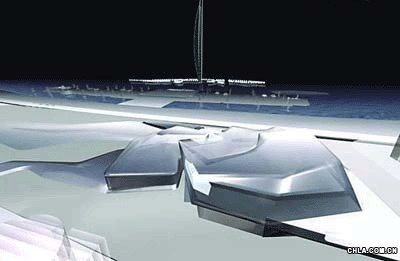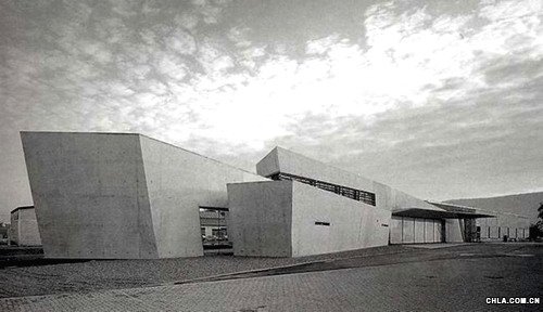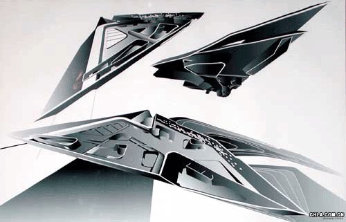 方案中的建筑物面向場地中的大道,進入大門200-300m,就可看到右手邊銳利的刀刃狀的長而薄的房檐,這就是扎哈常常描繪的“建筑的碎片”。沿著路,整個建筑的造型低低長長的延伸下去,卻并不是單一的正方體的延伸,而是3個相似三角形的銳角并排重疊在一起,象一個緩緩下行的樂章,里面充滿了強烈的流動感和速度感。