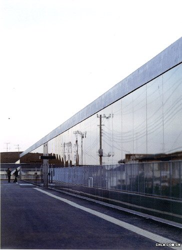妹島經常運用透明的物質構成交錯的空間,把人們從對建筑空間的慣有體驗和透視觀感中解放出來。她的外墻純凈但是材質豐富,有點象女性的肌膚,有彈性,甚至有些性感。在外墻上她經常使用鋁板,打孔的不銹鋼板和玻璃。特別是對玻璃的運用有其獨到之處,她經常采用透明的,磨砂的,尤其是貼膜玻璃,使人觀看外面景物有種陌生,虛幻和變形的意味,有一種預言又止的曖昧在里面,充滿了日式的精致與淡淡的惆悵。就象是川端康成的小說“那種寂靜的美似乎把時間都凝固了”。(圖16)